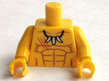Torso Bare Chest with Medium Nougat Muscles Outline, Dark Orange Scratches, White Animal Tooth / Claw Necklace Pattern / Yellow Arms / Yellow Hands